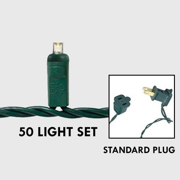 5mm LED – Warm White, 50L Green Wire – 4in. Spacing – Standard Plug