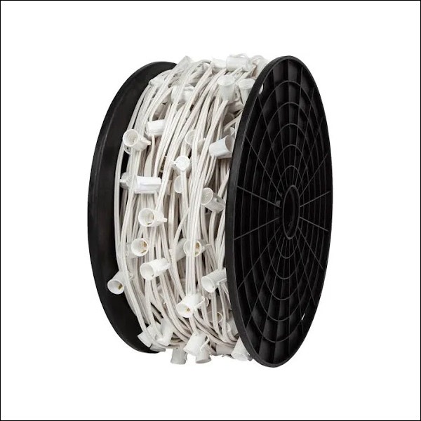 Bulk Socketed Spools, WHITE C9 Socket, 18 AWG, 1000 Feet, 12 in. Spacing