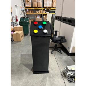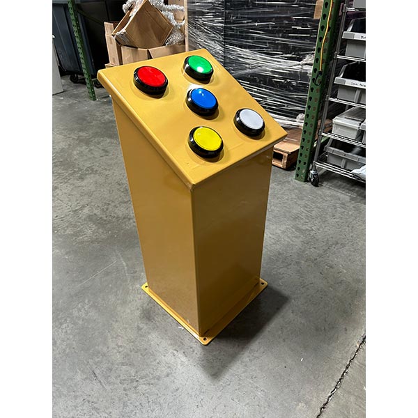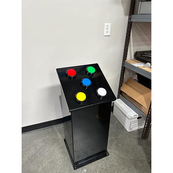 Kiosk allows user to change the color of the lighting displays by touching buttons.