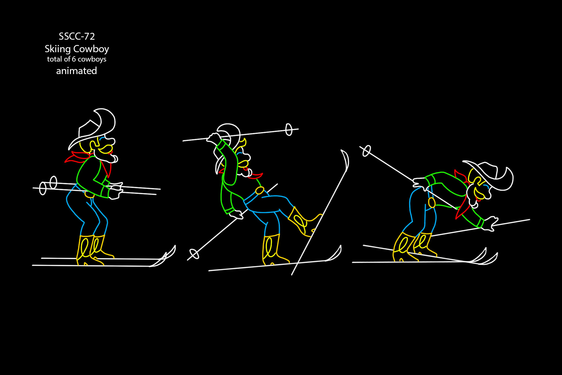 SKIING COWBOY (total of 6 cowboys) (animated)