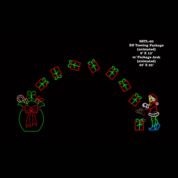 - Elf Tossing Package: 9′ x 13′ w/ Package Arch (animated) 45′ x 25′
