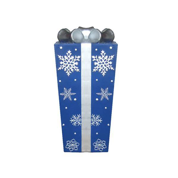Lit Fiberglass Gift Box with Snowflake Design – BLUE